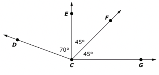 Use the diagram to solve the problem. - The measure of \angle DCE=70 \degree
