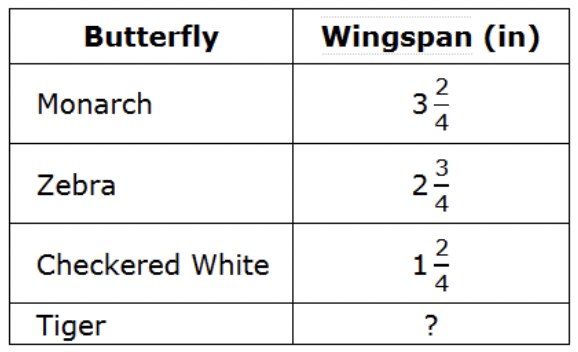 The wingspan of the Tiger Butterfly in \frac{3}{4} inch longer than that of the Monarch Butterfly.