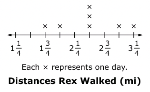 The line plot shows the distances, in miles, Rex walked on seven days.