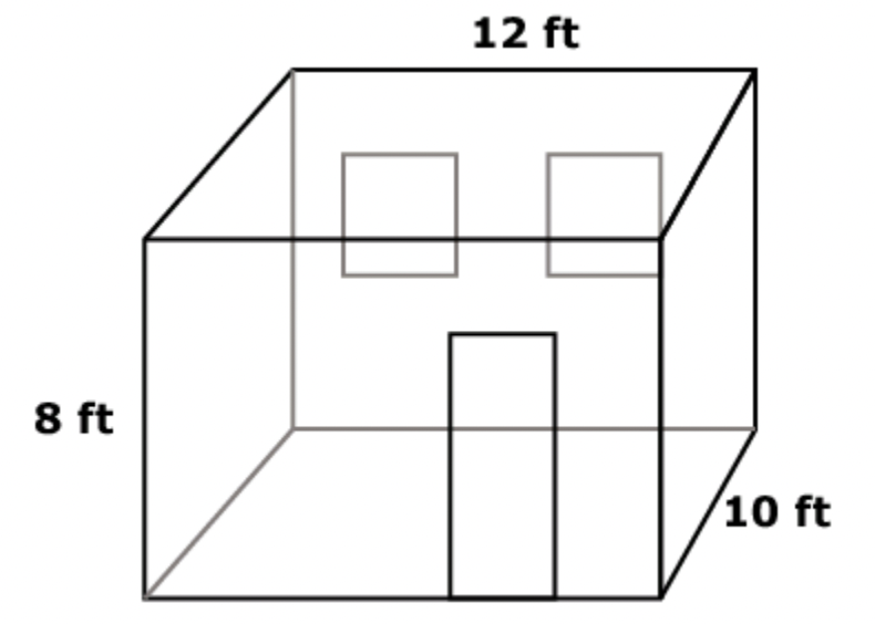 The room is shaped like a rectangular prism with a height of 8 feet, length of 12 feet, and width of 10 feet as shown.