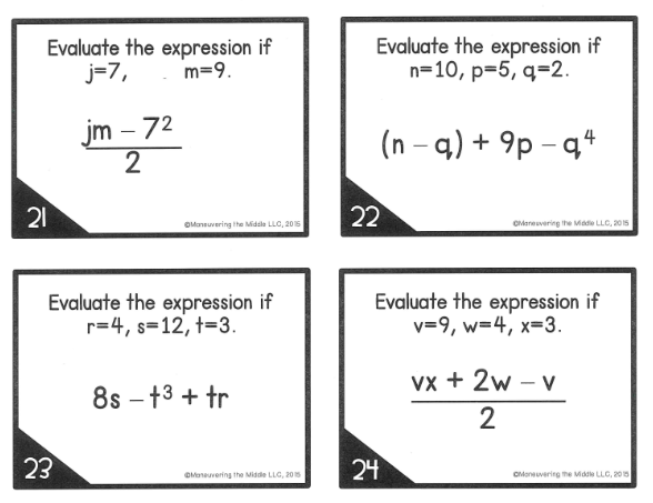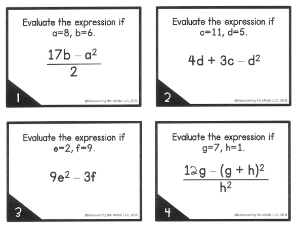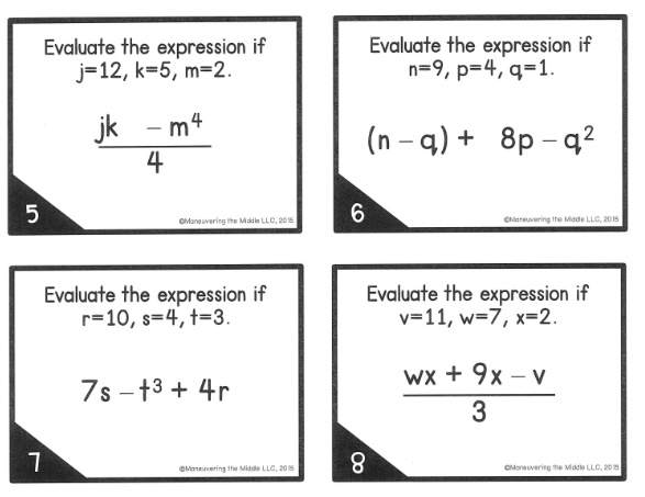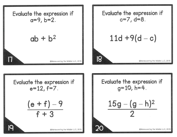 Evaluating Expressions with Substitution Task Cards (EE.2)