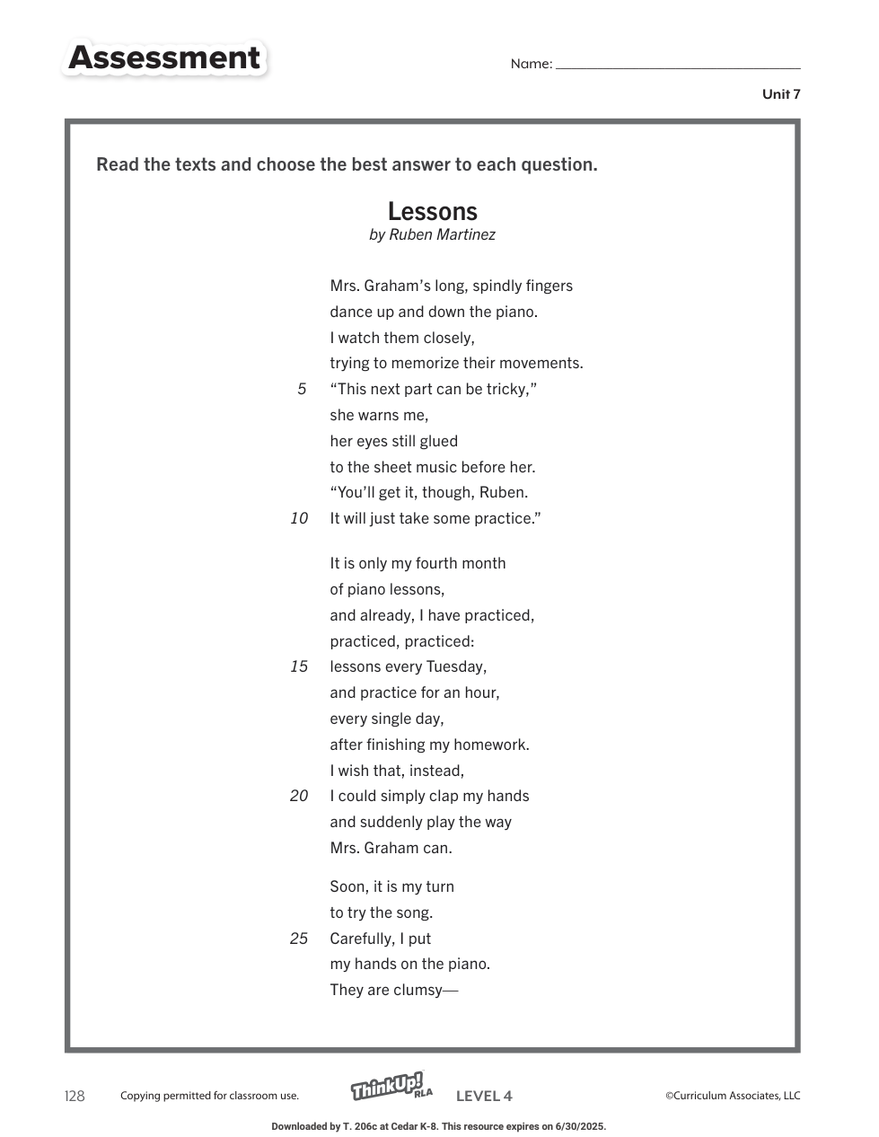 Based on the endings of the poems, which of these predictions can the reader make about both Ruben in "Lessons" and the daughter’s son in "Family Strings"?
