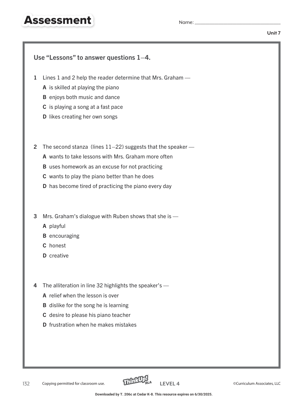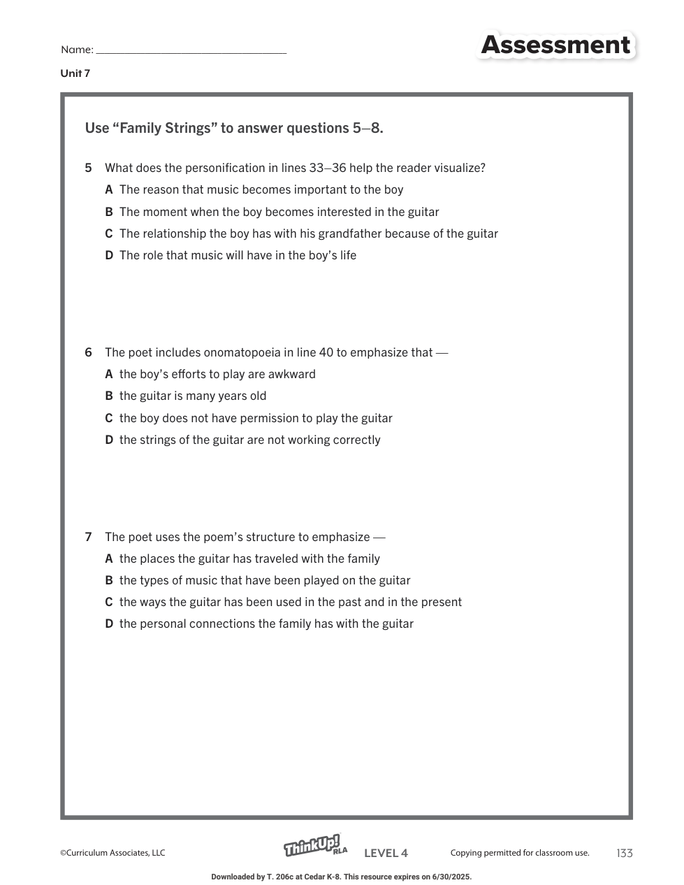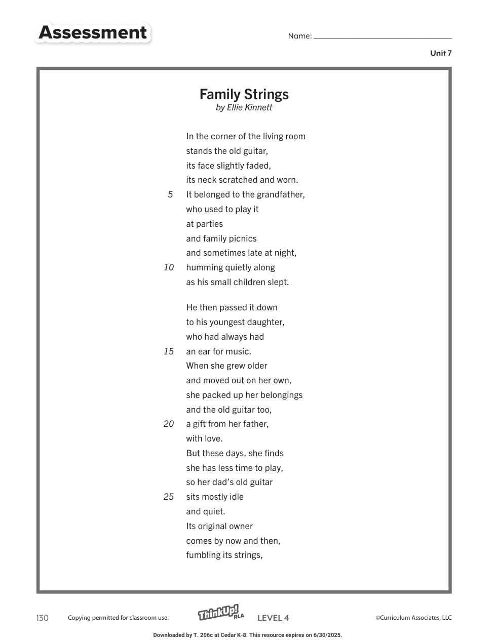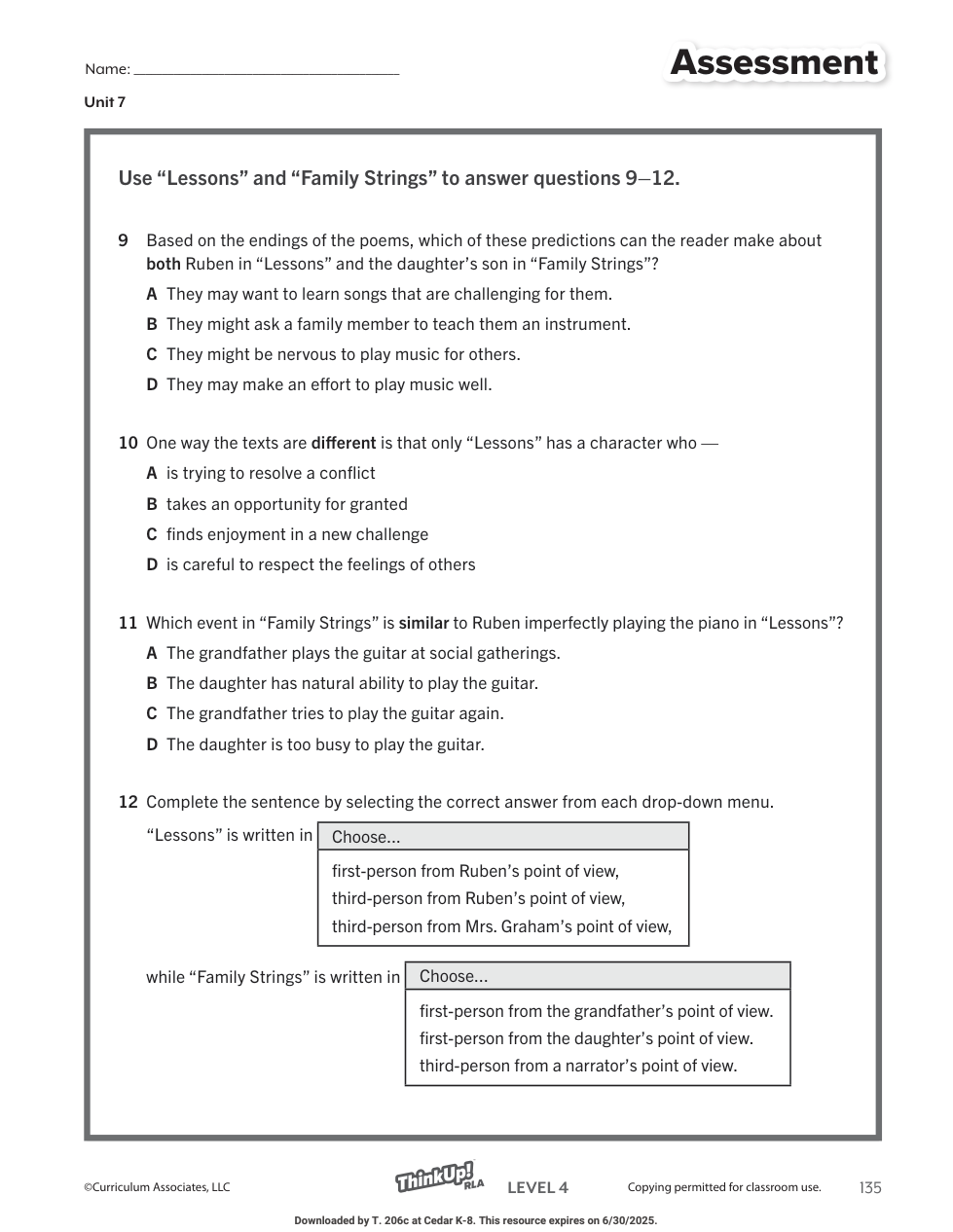 Complete the sentence by selecting the correct answer from each drop-down menu. "Lessons" is written in _____ while "Family Strings" is written in _____