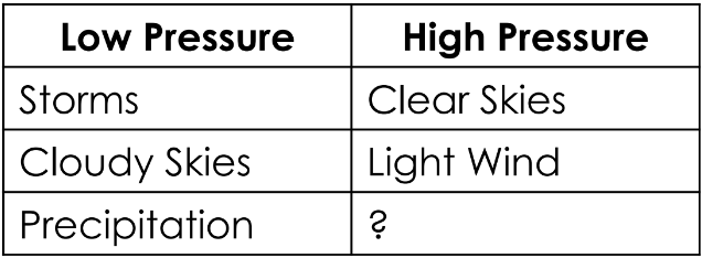 Which of the following best describes the different weather patterns brought by pressure systems?