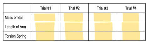 The relationship between the torsion spring and the distance can be stated as such: As the torsion spring__________ the distance__________.