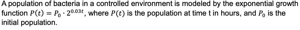 Algebraically, find the time (𝑡) it takes for the population to reach 3000 bacteria.