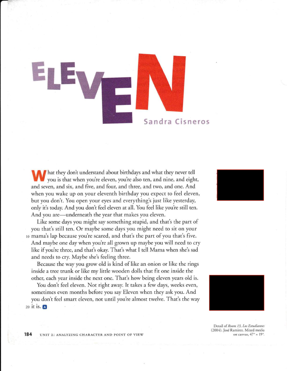 Directions: Read the story Eleven in your kiterature book (pgs. 200-203). When you are finished reading the story, answering questions 1-10.