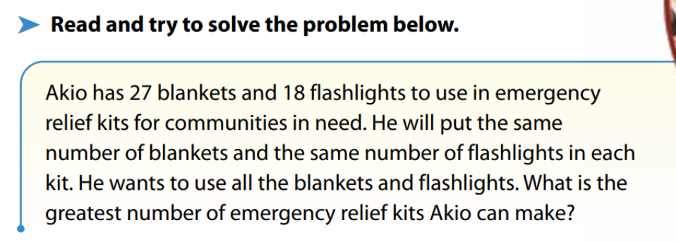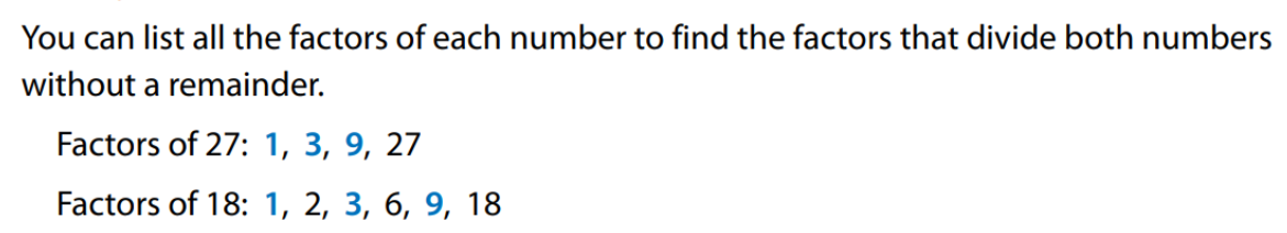 LIST all the COMMON ways (factors) Jewel can share 24 buttons and 18 bracelets into equal groups.