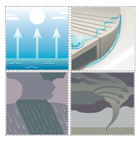 Which of the following explains how water undergoes a change of state in one stage of the water cycle in order to move from the ocean's surface into the air?