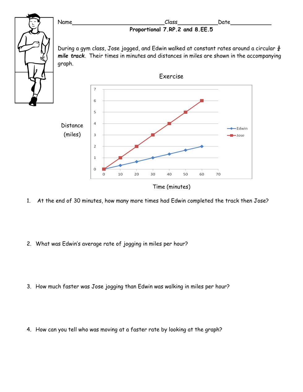 At the end of 30 minutes, how many more times had JOSE run around the track than EDWIN? *Pay attention to the length of the track in the description above the graph.*
