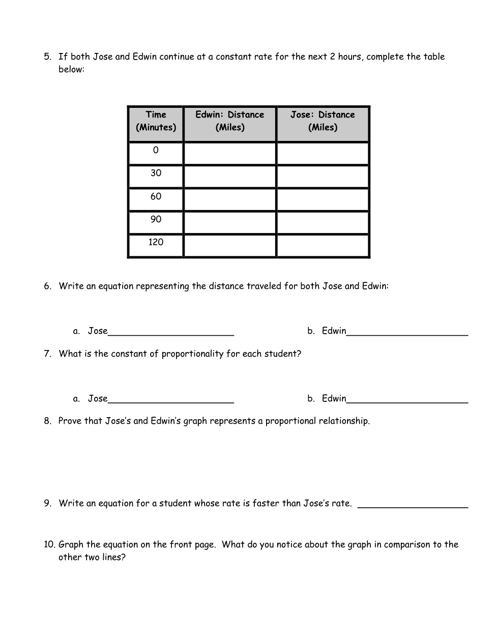 Write an equation representing the distance traveled for both Jose and Edwin.