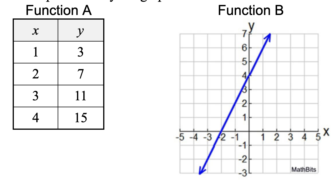 Which function has the greater rate of change?Which function has the greater y-intercept?