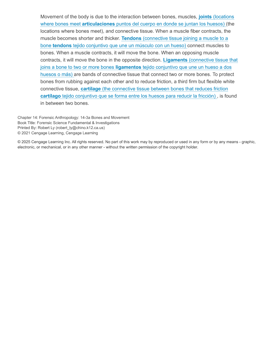 ligaments | arrow_right_alt | connective tissue found between 2 bones at a joint |