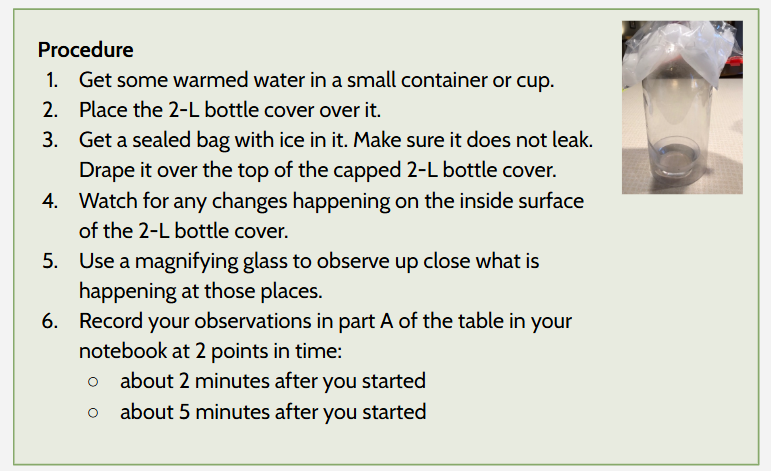How could these ideas help us explain why droplets appeared on the inside of the bottle and grew larger as we cooled the humid air in Investigation A?