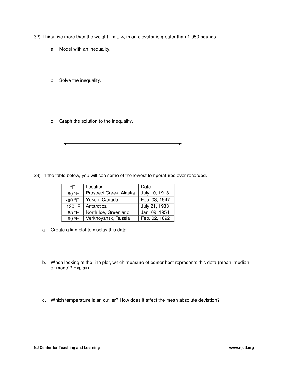 - include at least 3 values on the number line- open vs. closed circle- shading left or right