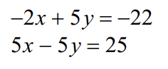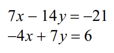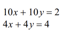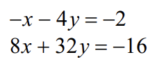 When solving systems of equations there are three possible solutions: the lines intersect at one point (x, y); the lines are parallel and never touch: no solution; or the lines are actually the same line and the they touch everywhere so we write infinitely many solutions.