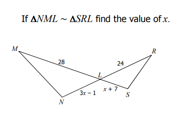 The triangles shown below are similar. Solve for x.