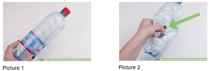 Explain how the amount of space the air particles inside the bottle have is different in each pictures.