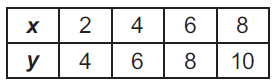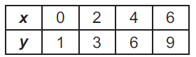 Plot the three pairs of values from the table on the coordinate plane.