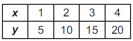 Which table shows four equivalent ratios?