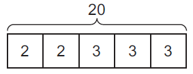 A painter mixes black paint and white paint to create gray paint. The ratio of black paint to white paint is 2 cups to 3 cups. The painter needs 20 cups of gray paint. Which diagram could be used to find the number of cups of black paint and the number of cups of white paint needed to make the gray paint?