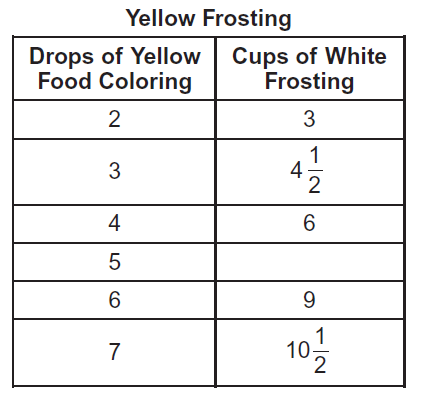 The table shows quivalent rations for mixing yellow frosting.