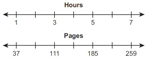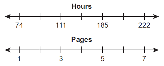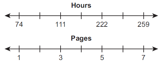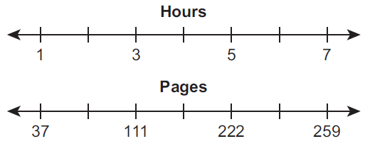 A student reads 111 pages in a book in 3 hours. The student reads a second book that has 259 pages at the same rate. Which diagram best shows how long it will take the student to finish reading the second book?