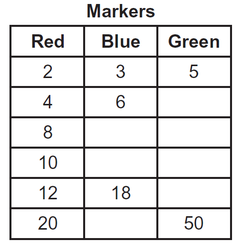 The ratio of red markers to blue markers in a classroom is 2:3, and the ratio of blue markers to green markers is 3:5.