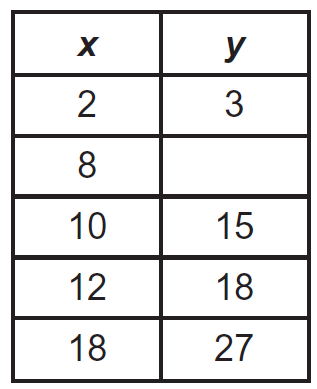 A table of equivalent ratios is shown. What is the missing value in the table?