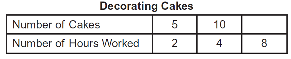 Tran decorates cakes for a bakery. The table shows the relationship between the number of cakes Tran decorates and the number of hours Tran works.