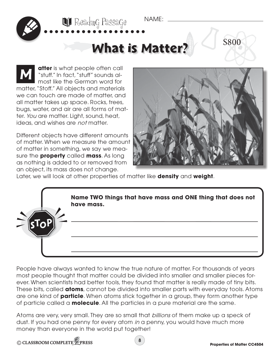 The scientific word that is closets to the everyday word "stuff" is __________