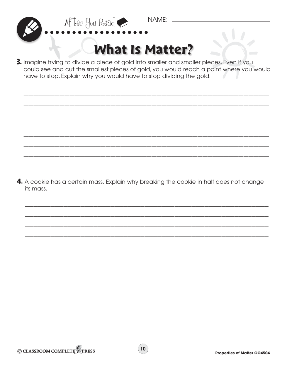 Imagine trying to divide a piece of gold into smaller and smaller pieces. Even if you could see and cut the smallest pieces of gold, you would reach a point where you would have to stop. Explain why you would have to stop dividing the gold.