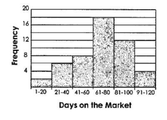 The histogram above gives the number of days that a group of homes were on the market last year before they sold. How many homes were on the market for at least 81 days?