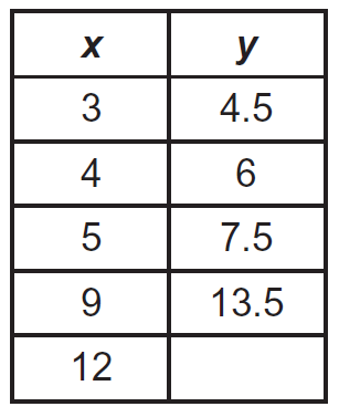The table shows a relationship between x and y.