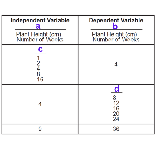 Allison recorded information on the growth of a plant. She found that the plant grew at a rate of 4 centimeters (cm) per week. Use the words and numbers below the blank lines to complete the table showing Allison’s data. Make sure to type your answer choice exactly as listed under the line you wish to choose it for.
