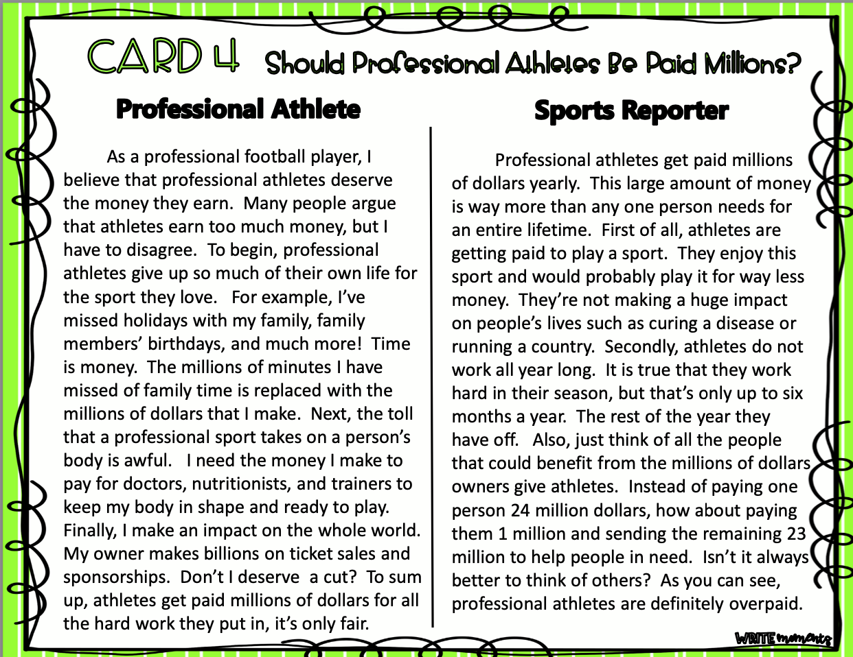 Do you think professional athletes should get paid millions? Use 2 reasons to support your opinion.