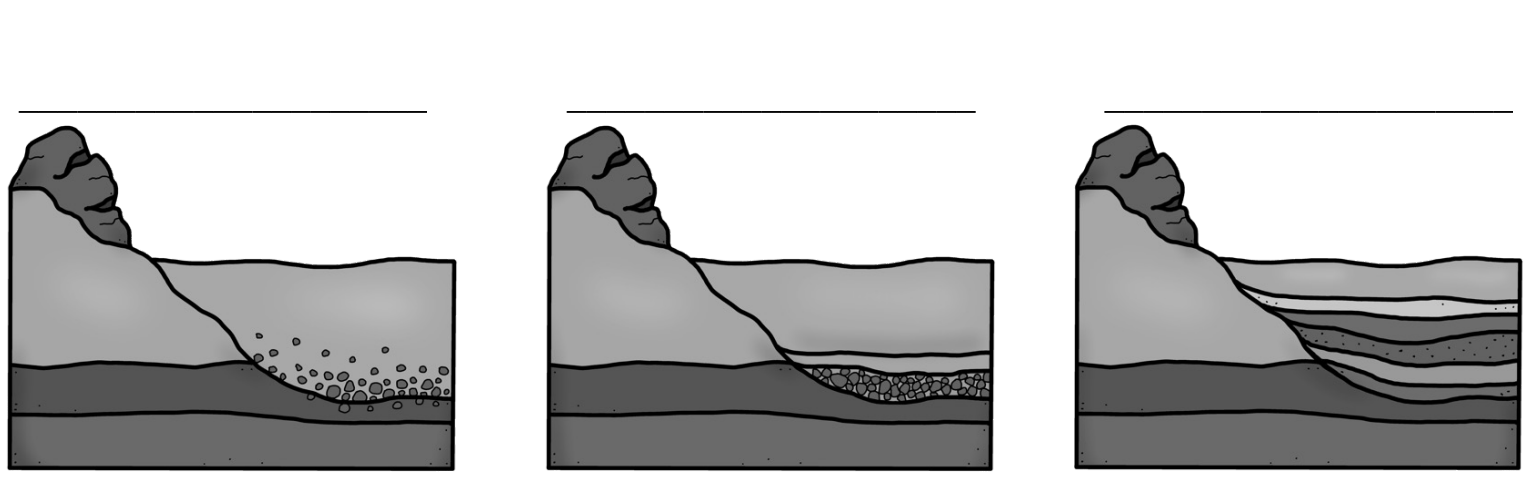 Identify each image that shows the sequence for the formation of sedimentary rock.