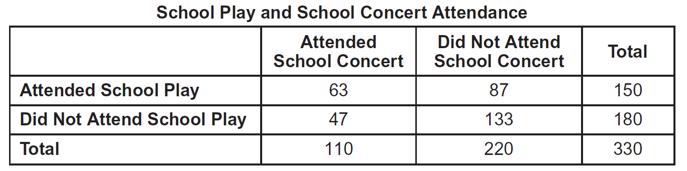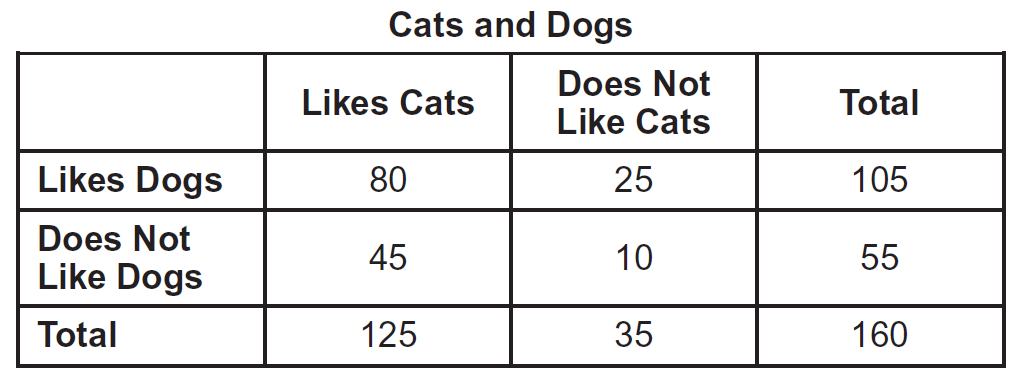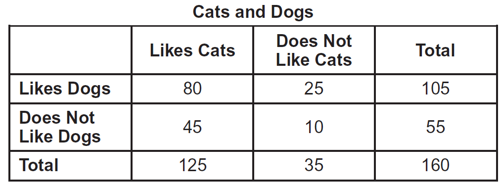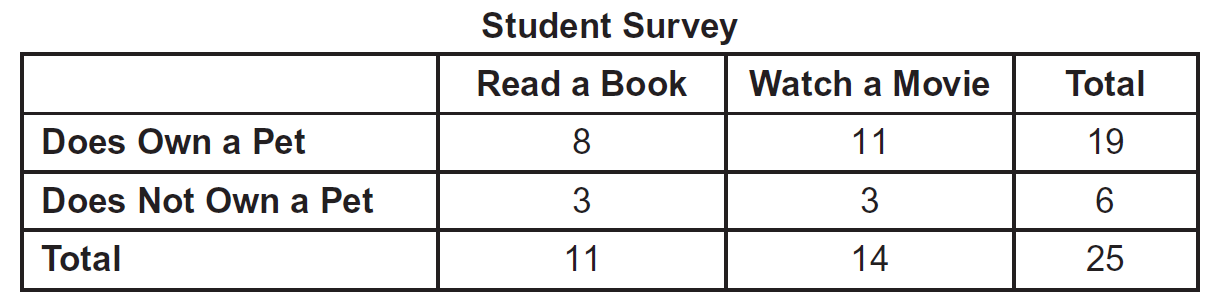 Math 8 Testlet 010 - Summarize two way tables 8.DSP.A.4a