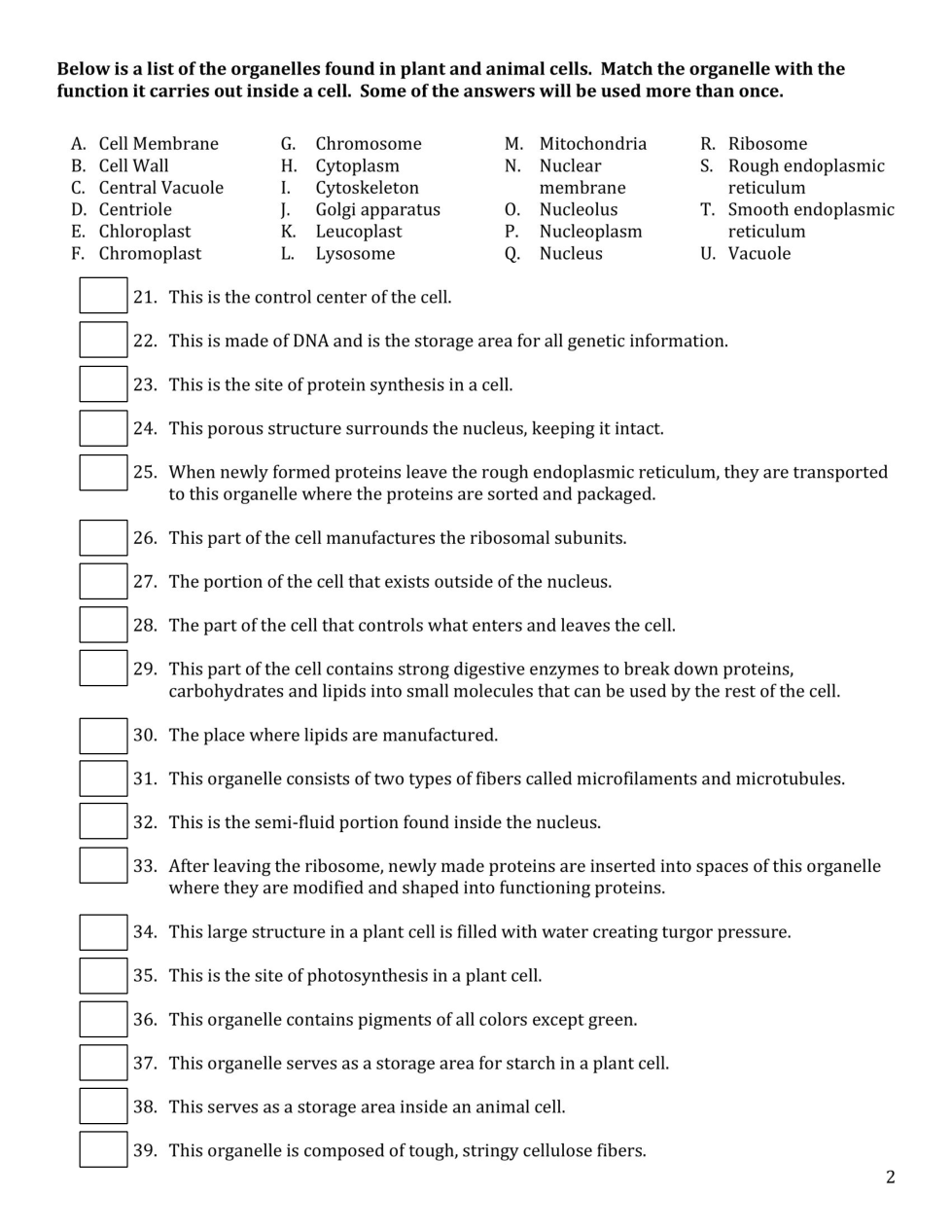 Match the organelle with the function it carries it out inside a cell. MAY BE USED MORE THAN ONCE