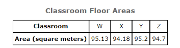 A principals will list the classrooms in order from the one that has the least floor area to the one that has the greatest floor area. Which classroom will the principal list second?