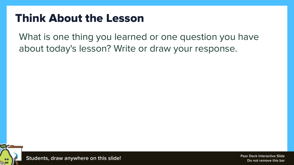 What is one thing you learned or one question you have about today's lesson? Write your response.