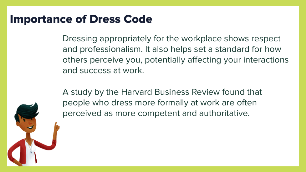 Why is maintaining a dress code important in the workplace?B. It is good to dress nicely just to show off your clothing.