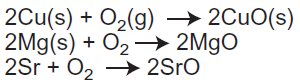 The chemical equations below show what happens when each of the three metallic elements in firework stars react with oxygen.