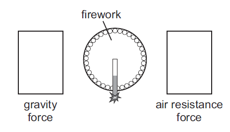 Draw an arrow in each box in the model to best show the forces acting on a firework while it is rising into the air after being launched. Arrows may be used more than once, and some arrows will not be used.