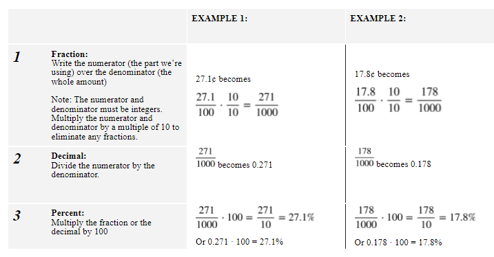 Express rational numbers as a fraction, decimal, and percent, and convert between the three