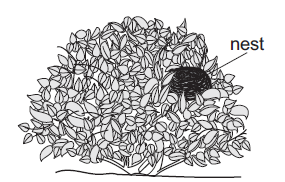 The drawing below shows a nest in a shrub.