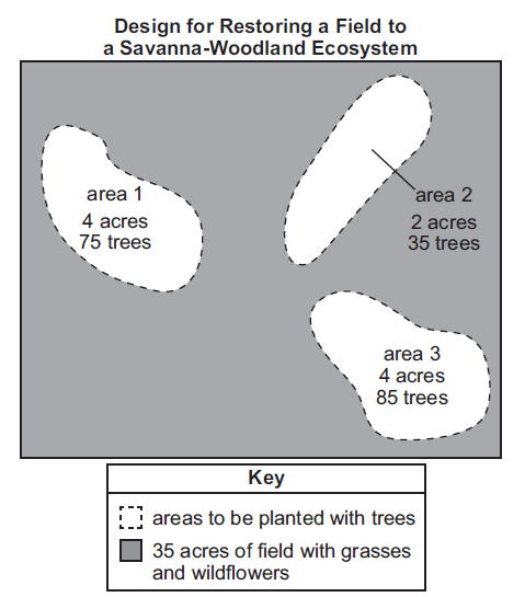 The model below shows one design for restoring an open field to a natural savanna-woodland ecosystem.