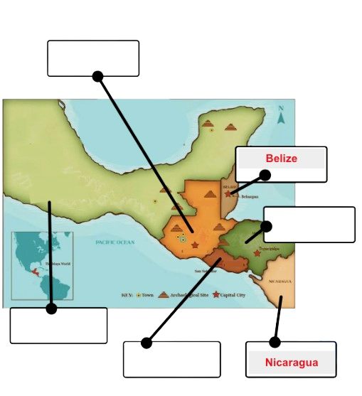 Drag and drop the name of each modern-day country to the right spot on the map of Mesoamerica.