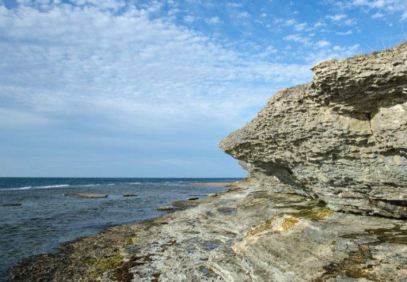 A cliff forms by the ocean.