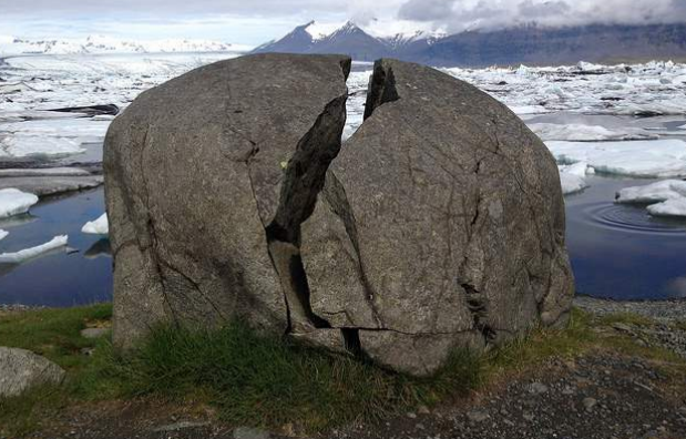 A rock is weathered.